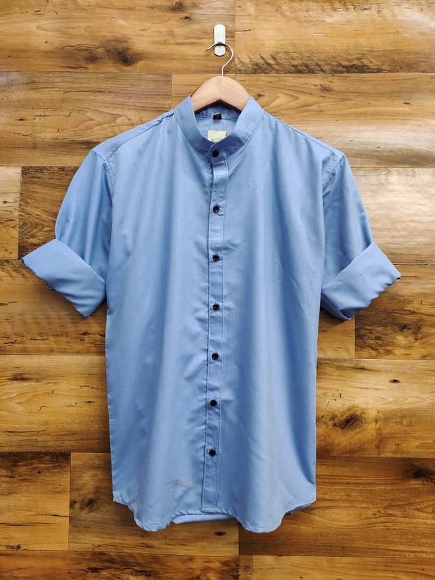 Solid Plain Full Sleeves Cotton Blend Made Casual Shirt With Chines Collar