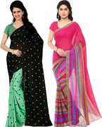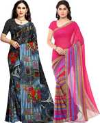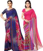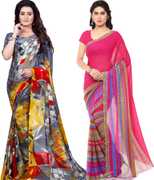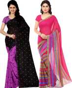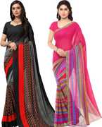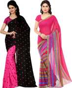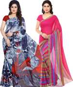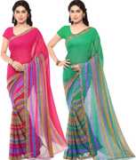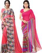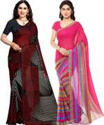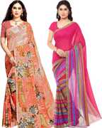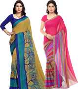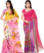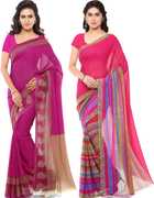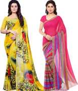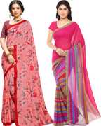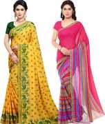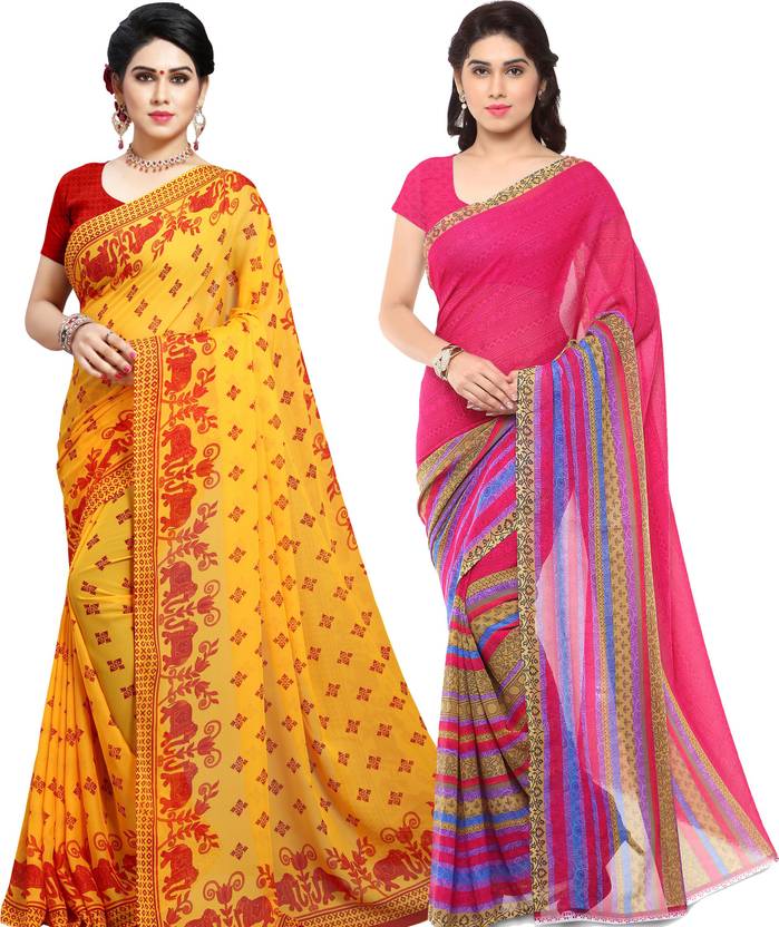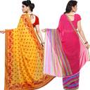 ANAND Printed Daily Wear Georgette Saree (Pack of 2, Red, Pink, Yellow)