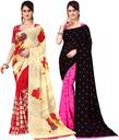 5.25 Meters Of Saree Length, Faux Georgette Made Pack Of 2 Sarees, 0.75 Meters Of Blouse Piece Length, Floral Print Daily Wear Sarees, Half & Half Casual Sarees With Un-Stitched Blouse Piece