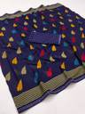 formal occasions.This saree features printed patterns, adding vibrancy and elegance to the overall look.