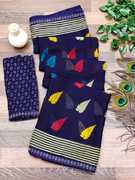 comes with an unstitched blouse piece, allowing for customization based on the wearer’s preferences.