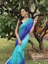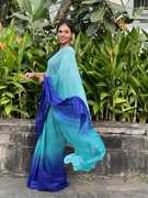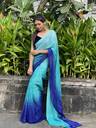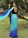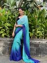 Light Blue & Blue Colored Georgette Made Satin Striped Embellished Bollywood Saree.This Ombre Patterned Padding Work (Multicolor Work) Saree Collection Suitable For Special Occasions Like Birthday,Wedding,Party & Other Pooja Occasions too.