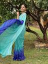 Georgette Made Ombre Patterned Satin Striped Padding Work Saree