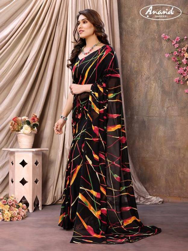 Anand Sarees Floral Print Daily Wear Georgette, Chiffon Saree (Black)