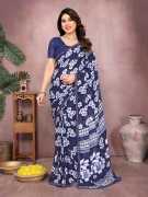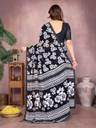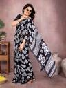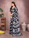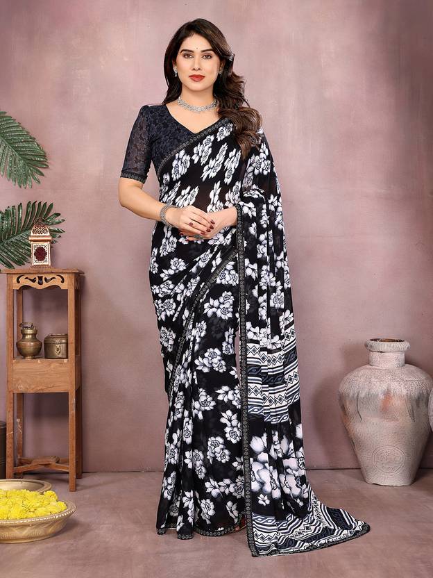 Floral Print Daily Wear Georgette, Lace Saree (Black)