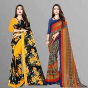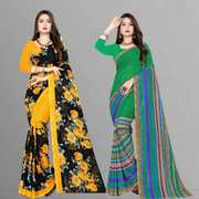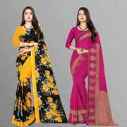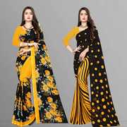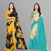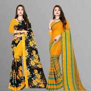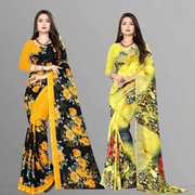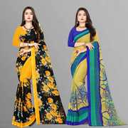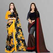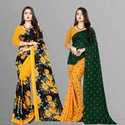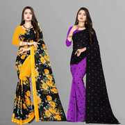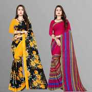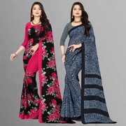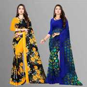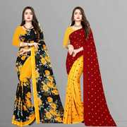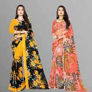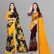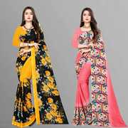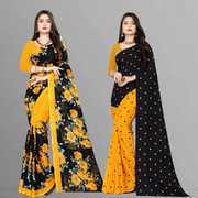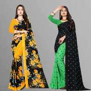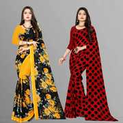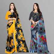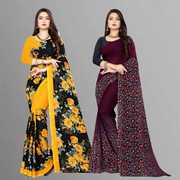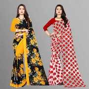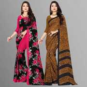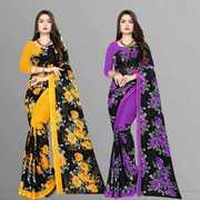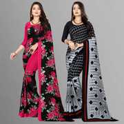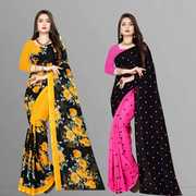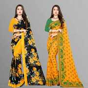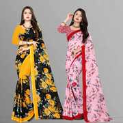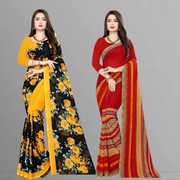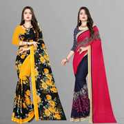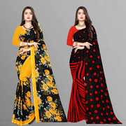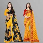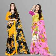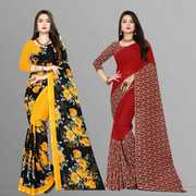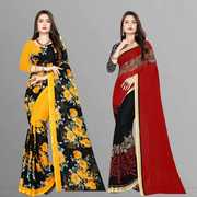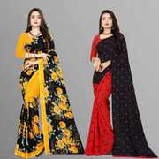 Anand Sarees Floral Print Daily Wear Georgette Saree (Pack of 2, Red, Black)