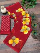 This beautifully crafted daily wear saree made from lightweight georgette fabric. Designed for comfort and style, this saree features a stunning combination of floral prints that add a touch of charm to your daily look. The soft and breathable georgette material drapes gracefully, making it ideal for all-day wear. It comes with a matching un-stitched blouse piece, giving you the freedom to tailor it to your perfect fit and style.