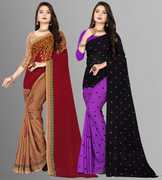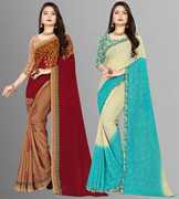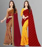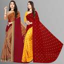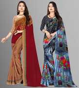 This is a pack of 2 Sari Collection made from Faux Georgette fabric ideal for women by Anand Sarees.This is a casual & Daily Wear collection designed in various printing methods in which multiple combinations of colors have been implemented in various printing patterns that gives beautiful look to these sarees.You will get 5.25 Meters saree having width of 1.12 meters and blouse 0.75 meters.New and Latest Faux Goergette made lightweight Collection of Sari in Pack of 2 units which is designed in beautifuly looking printed patters in good looking colors combinations ideal for daily and casual wear.