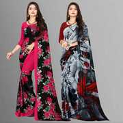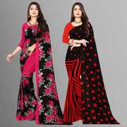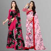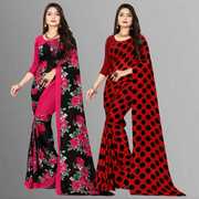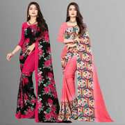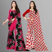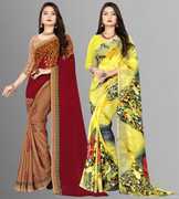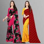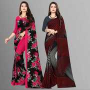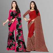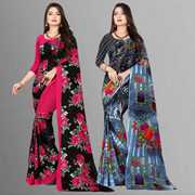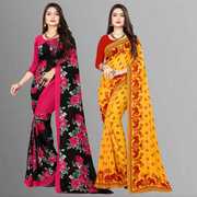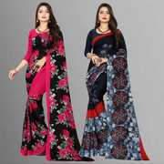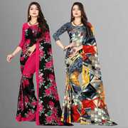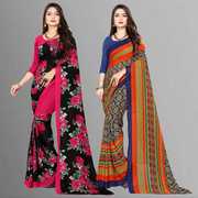 2 Printed Casual Georgette Sarees, 2 Printed Georgette Un-Stitched Blouse Pieces