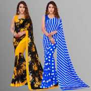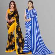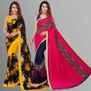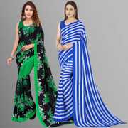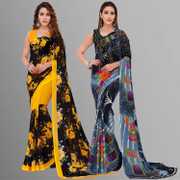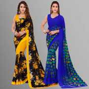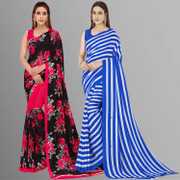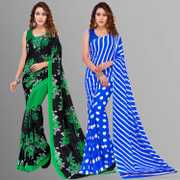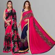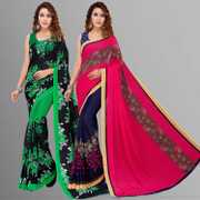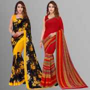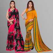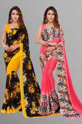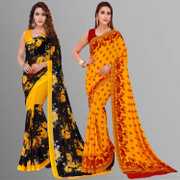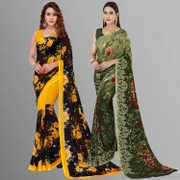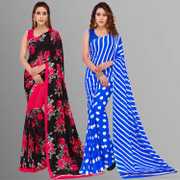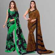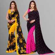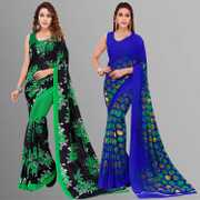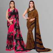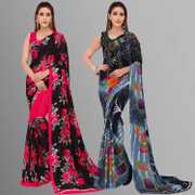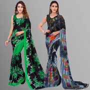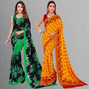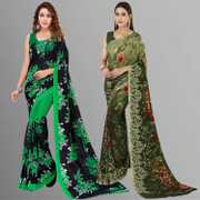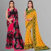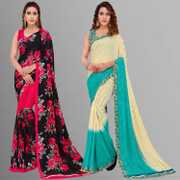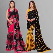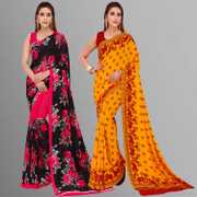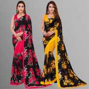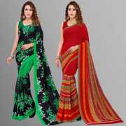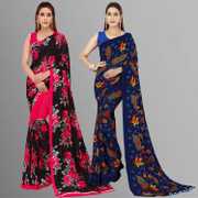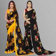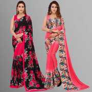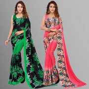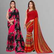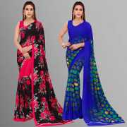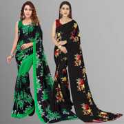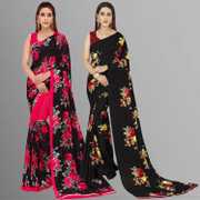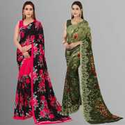 Anand Sarees Floral Print Daily Wear Georgette Saree (Pack of 2, Red, Green, Black)