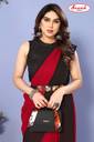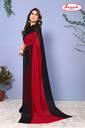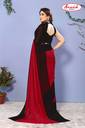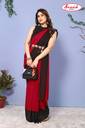 Georgette Made Red & Black Colored Daily Wear Striped Pattern Casual Regular Wear Padding Work (2 Color Combination Work) Fashion Saree With Matching Fabric Un-Stitched Blouse Piece