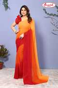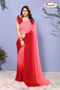 Wedding Look, Summer Georgette, Summer Chiffon, Stylish Stripes, Red, Printed half and half, Printed Georgette Sarees, Ombre, Occasional Sari/Party Sari, Half Saree, For Daywear