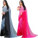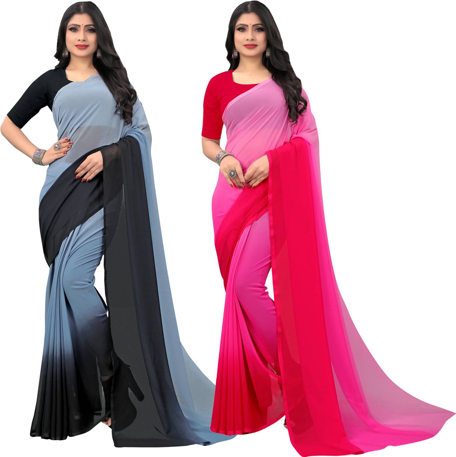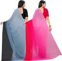 Anand Sarees Ombre, Self Design Bollywood Georgette, Chiffon Saree (Pack of 2, Grey, Black, Pink)