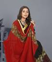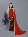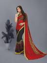 Paisley, Black Casual Printed Saree, Red, Floral Print Daily Wear Saree, Georgette Printed Half & Half Sari