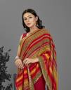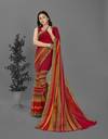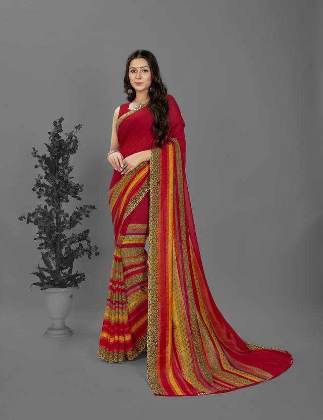 Except compliment as your wrap yourself in this Printed saree. Featuring georgette fabric with prints & contrast color solid border, which is the main highlight of this saree. Saree comes along with Unstitched Printed blouse piece. It's a perfect saree to buy for casual & regular wear.