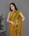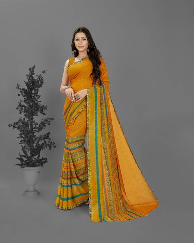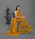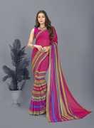Except compliment as your wrap yourself in this Printed saree. Featuring georgette fabric with prints & contrast color solid border, which is the main highlight of this saree. Saree comes along with Unstitched Printed blouse piece. It's a perfect saree to buy for casual & regular wear.