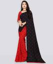 Black,Red Polka Print Georgette saree With Unstitched Blouse (Saree, 5.25 Mtr Blouse, 0.80 Mtr)