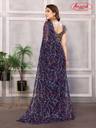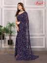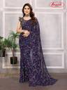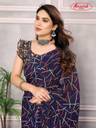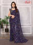 Georgette Daily Wear Dark Blue Colored Striped, Printed Party Wear Saree With Printed Un-Stitched Blouse Piece