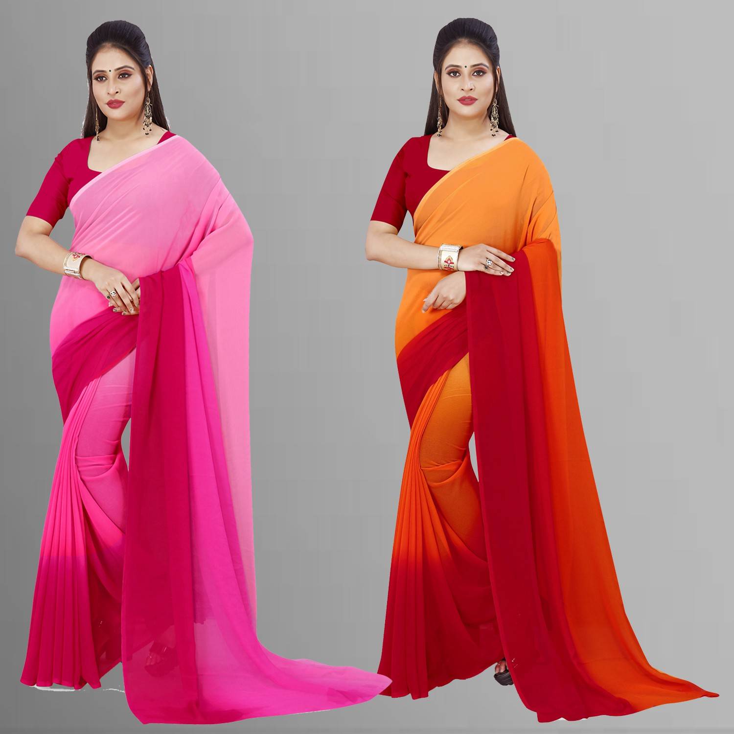 Anand Sarees Faux Georgette Printed Multicolor Combo Sarees With blouse piece . This Printed sarees collection is ideal for Casual and Daily wear This is original Collection From Anand Sarees .Matching blouse is available to add the glam. Saree will be in a length of 5.25 Meters,width of 1.12 Meters having bluose piece of 0.75 Metres.Saree Fabrics: Faux georgette , BLouse Fabric: Faux georgette , Package will contain:2 Saree & 2 Blouse .