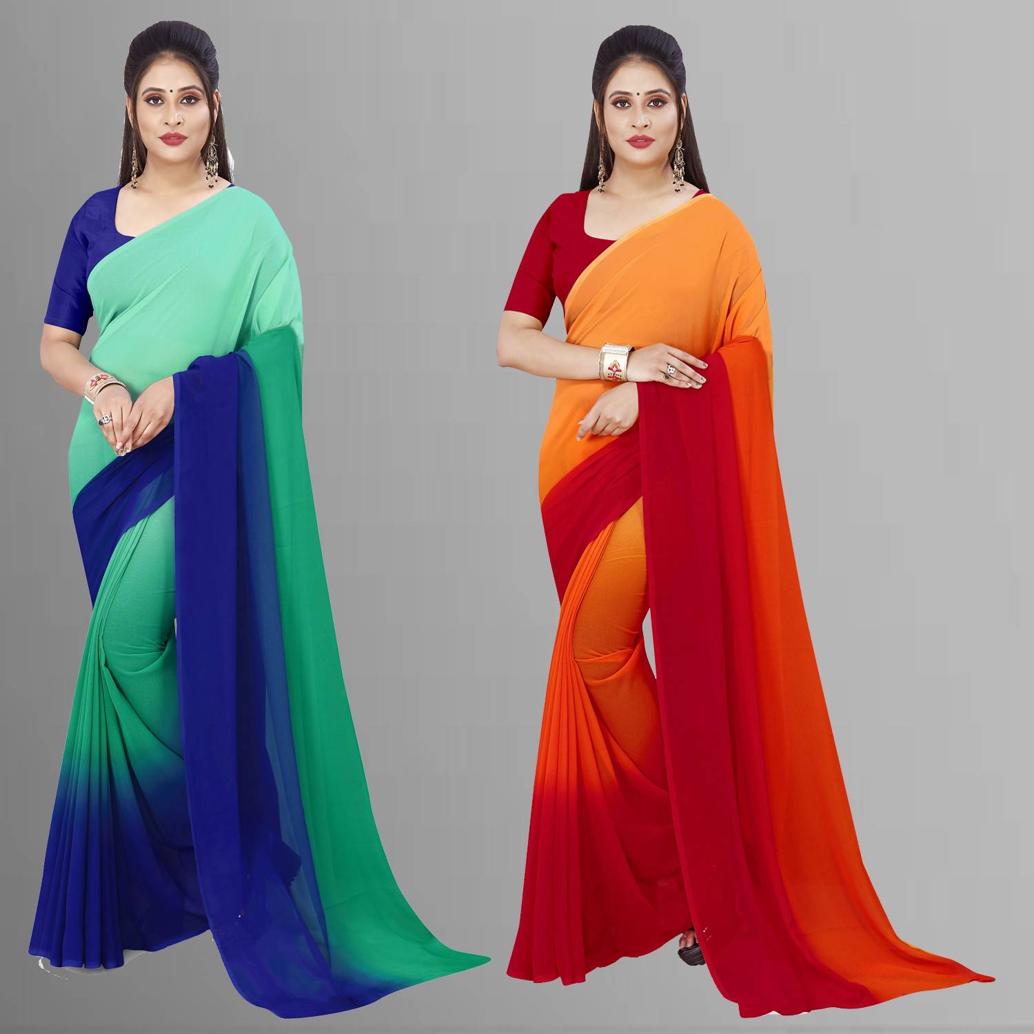 Anand Sarees Solid/Plain Bollywood Georgette Saree (Pack of 2, Blue, Pink)