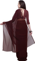 Anand Sarees Solid/Plain Bollywood Georgette Saree (Brown)