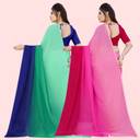 Anand Sarees Solid/Plain Bollywood Georgette Saree (Pack of 2, Blue, Pink)