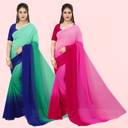 Anand Sarees Solid/Plain Bollywood Georgette Saree (Pack of 2, Blue, Pink)
