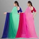 Anand Sarees Solid/Plain Bollywood Georgette Saree (Pack of 2, Blue, Pink)