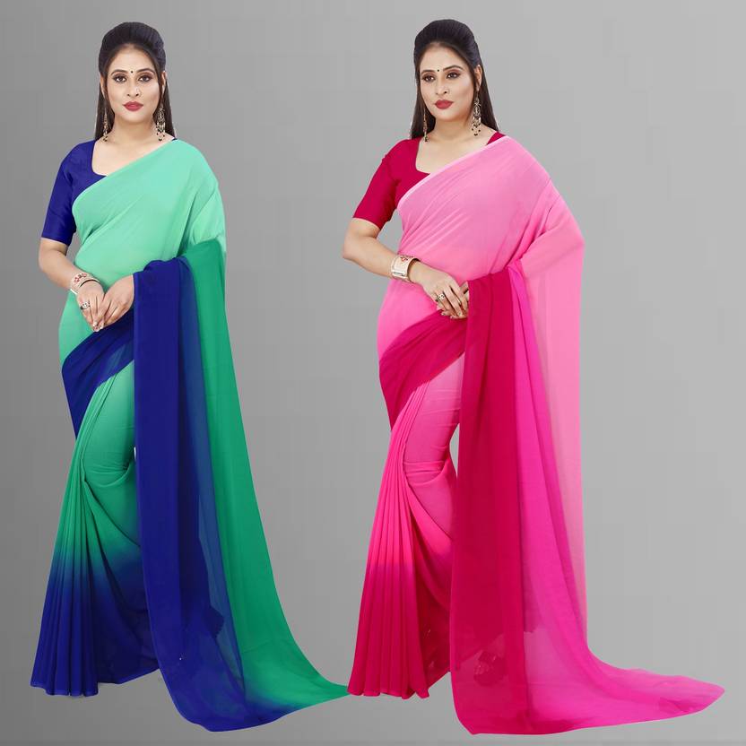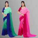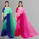 Anand Sarees Solid/Plain Bollywood Georgette Saree (Pack of 2, Blue, Pink)
