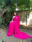 Anand Sarees Solid/Plain Bollywood Georgette Saree (Blue)