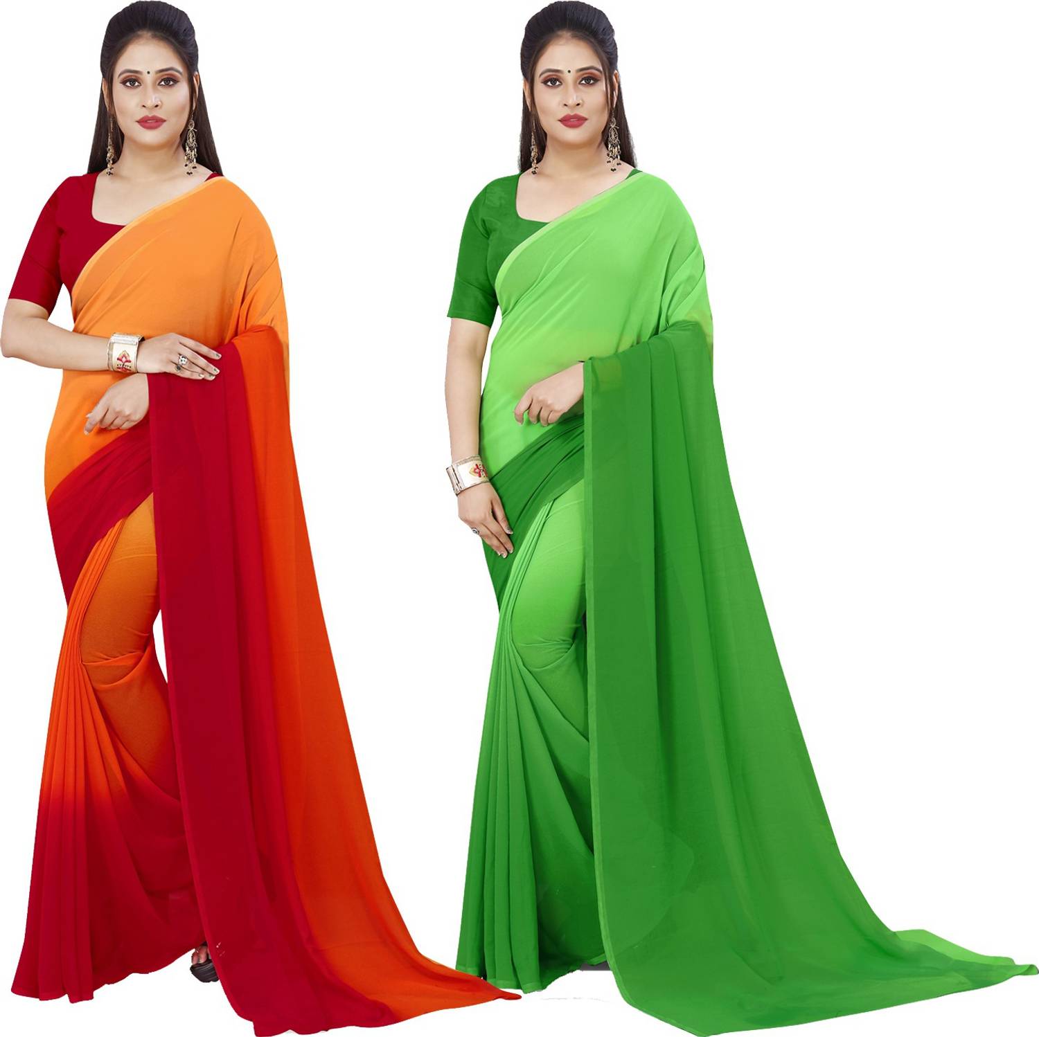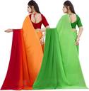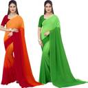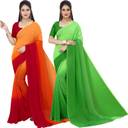 Anand Sarees Solid/Plain Bollywood Georgette Saree (Pack of 2, Green, Orange)