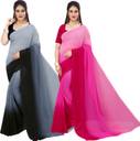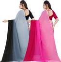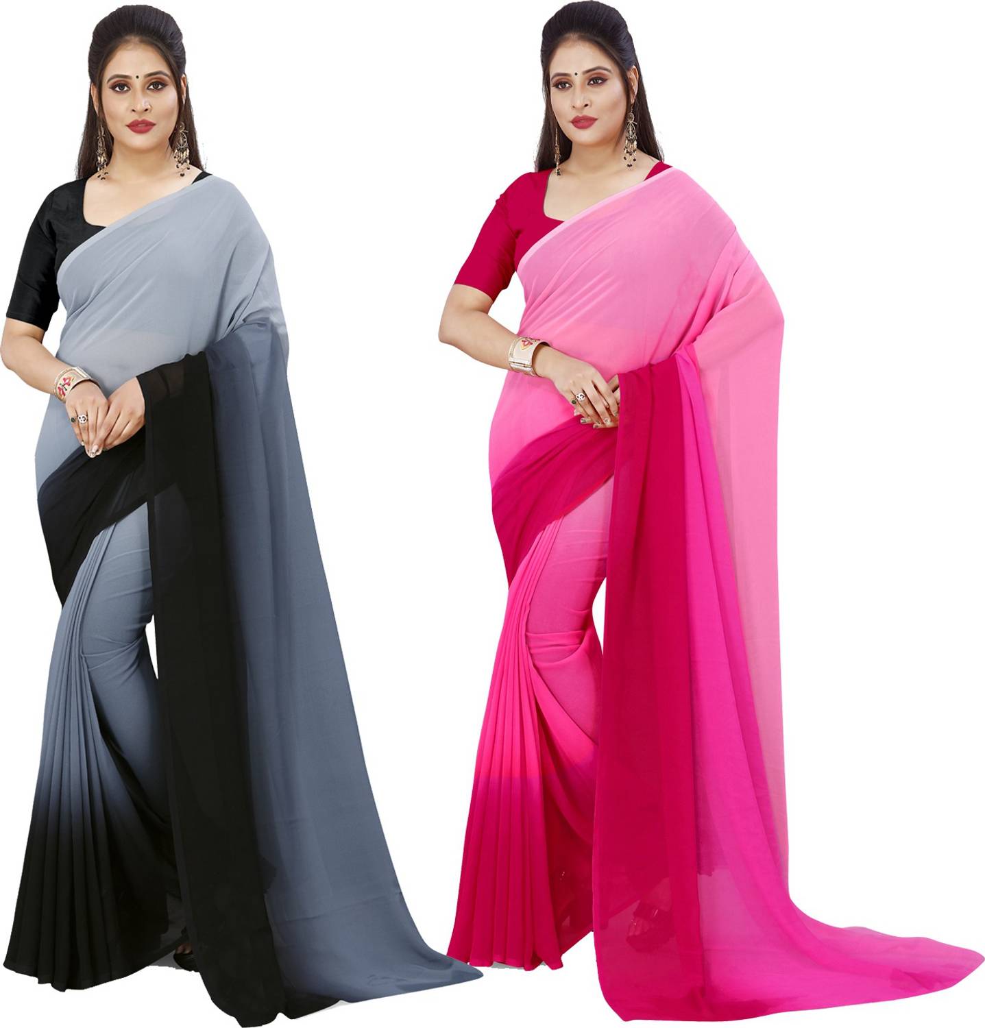 Anand Sarees Solid/Plain Bollywood Georgette Saree (Pack of 2, Black, Pink)