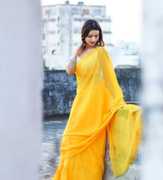 Solid/Plain Bollywood Georgette Saree (Yellow)