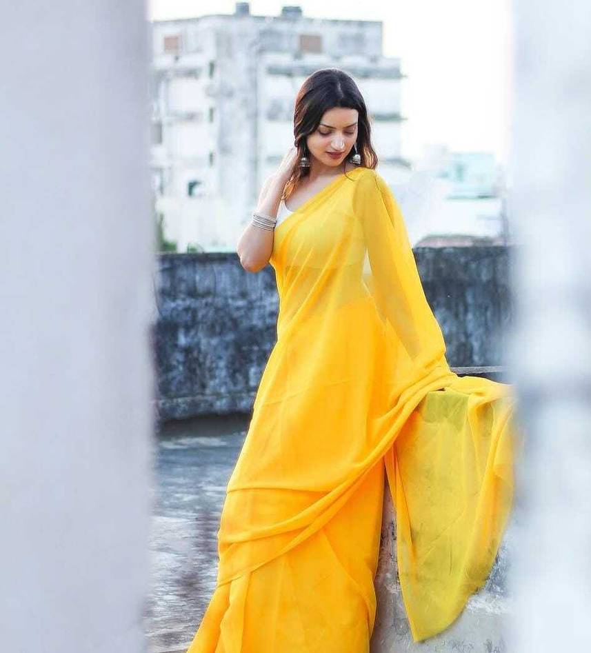 Solid & Plain Georgette Made Casual Regular Wear Saree
