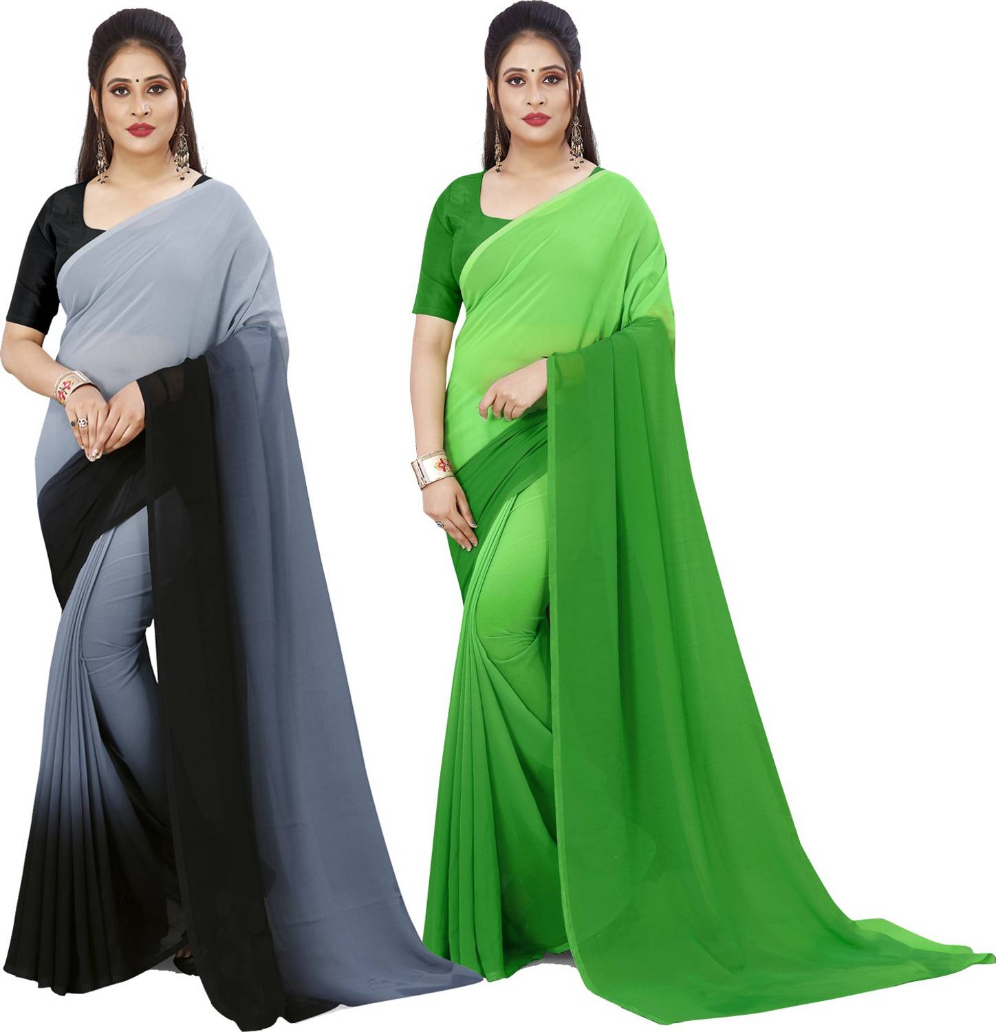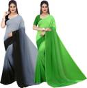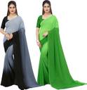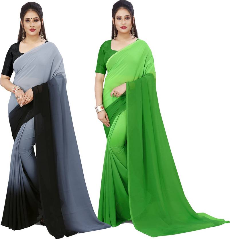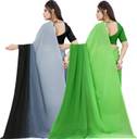Anand Sarees Solid/Plain Bollywood Georgette Saree (Pack of 2, Green, Black)