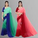 Anand Sarees Solid/Plain Bollywood Georgette Saree (Pack of 2, Blue, Pink)