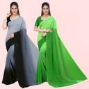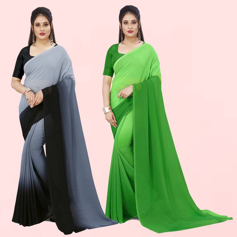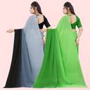 Anand Sarees Solid/Plain Bollywood Georgette Saree (Pack of 2, Green, Black)