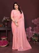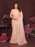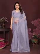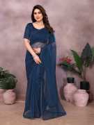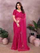 Diamond Embellished Net Fabric Made Saree With Diamond Worked Lace Border
