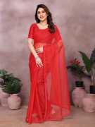 Add a touch of refined charm to your ethnic wardrobe with this stunning saree crafted from luxurious net fabric, offering an ethereal and graceful drape. The entire saree is adorned with shimmering diamond embellishments, adding a sparkling charm that catches the light with every movement. Whether you're attending a wedding, festive gathering, or a special occasion, this saree ensures you stand out with sophistication and grace.