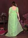 The saree comes with a complimentary Dupion silk un-stitched blouse piece, known for its subtle sheen and fine texture. This allows for custom tailoring to achieve the perfect fit and style that suits your personality.