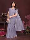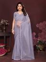 Anand Sarees Solid/Plain Bollywood Net, Lace Saree (Grey)