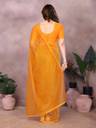 The saree comes with a complimentary Dupion silk un-stitched blouse piece, known for its subtle sheen and fine texture. This allows for custom tailoring to achieve the perfect fit and style that suits your personality.