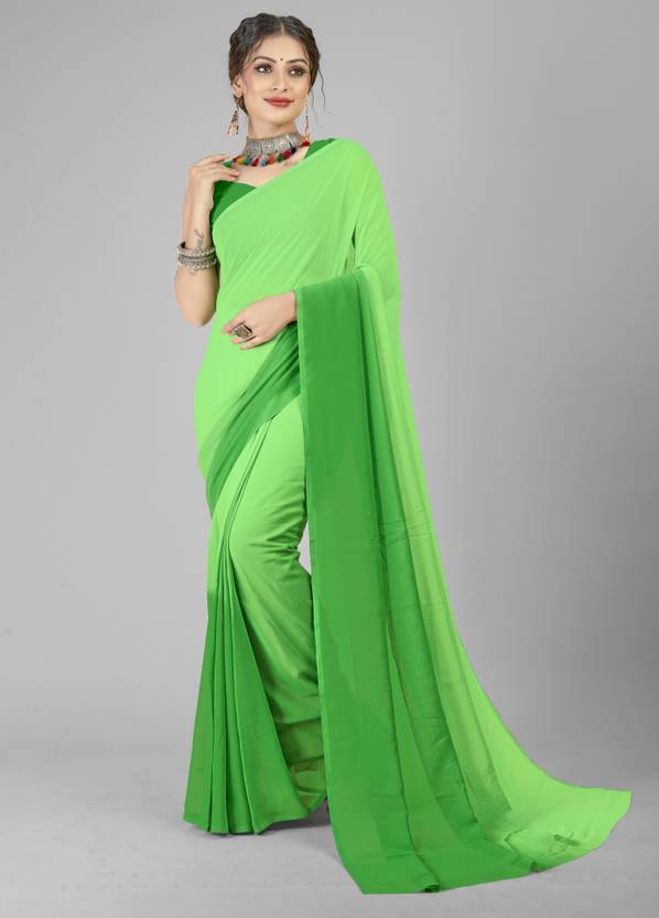 2 Color Plain Dyed Saree, Fashion Georgette Regular Wear Saree, Casual Ombre Saree With 5.25 Meters Of Length & 0.75 Meters Of Matching Fabric Un-Stitched Blouse Piece Length, Ombre & Striped Pattern Daily Wear Saree