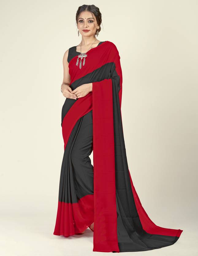 2 Color Plain Dyed Saree, Fashion Georgette Regular Wear Saree, Casual Ombre Saree With 5.25 Meters Of Length & 0.75 Meters Of Matching Fabric Un-Stitched Blouse Piece Length, Ombre & Striped Pattern Daily Wear Saree