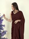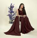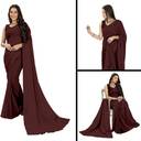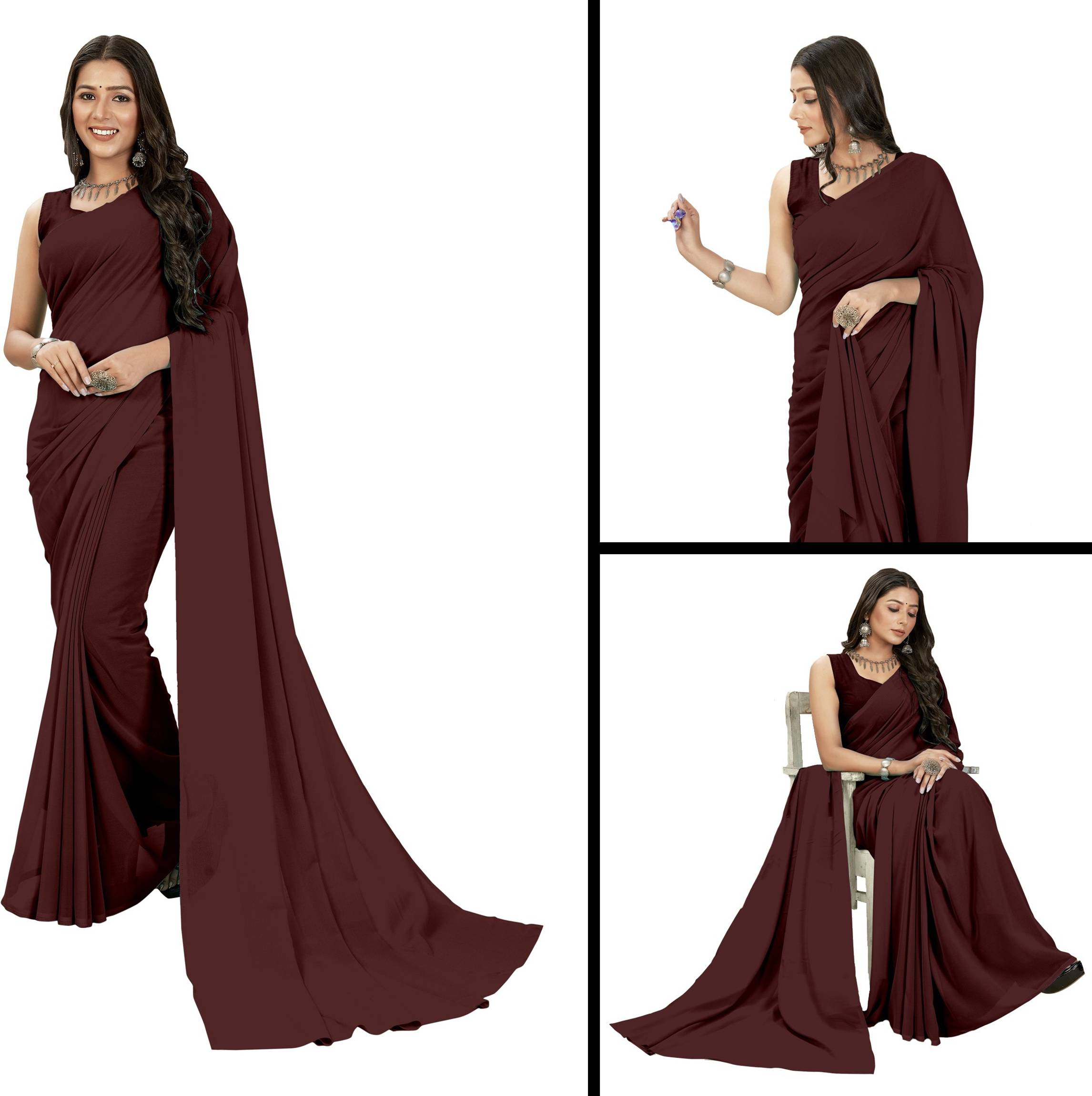 Daily Wear Printed Brown Colored Plain Fashion Georgette Regular Sari Having 5.25 Meters Of Length