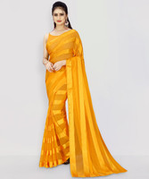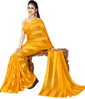 Anand Sarees Striped Bollywood Satin Saree (Yellow)