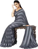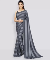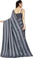 Anand Sarees Striped Bollywood Satin Saree (Grey)