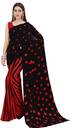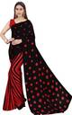 Striped Half & Half Sari With Un-Stitched Blouse Piece, Casual Printed Georgette Saree, Polka Print, Red & Black Daily Wear Saree
