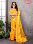 Satin bollywood party wear striped festive saree.