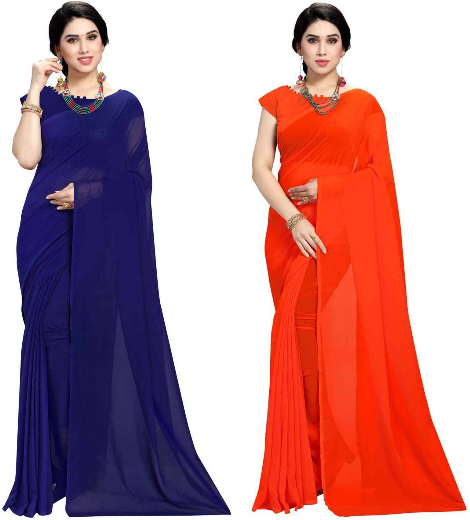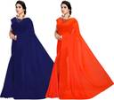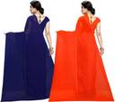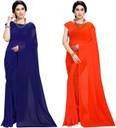 ANAND Solid/Plain Bollywood Georgette Saree (Pack of 2, Dark Blue, Orange)